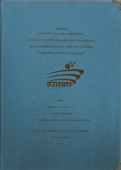 Skripsi Penciptaan Karya produksi ini ditulis oleh Lailatul Maghfiroh dengan judul Kekuatan Narasi Dalam Produksi Program Feature Televisi Kearifan Indonesia Edisi "Eksotisme Malam Jum'at Legi". Alasan pengambilan judul tersebut karena penulis terinspirasi dari berbagai sisi menarik seputar kekayaan kebudayaan lokal seperti ritual malam Jumat Legi. Indonesia merupakan nega…
